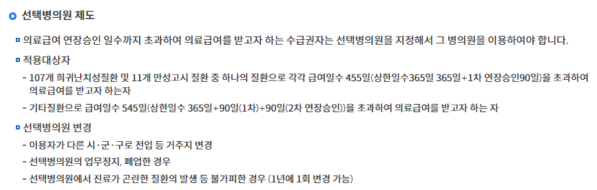 거주지 변경, 선택병의원 폐업 등 불가피한 경우(연 1회 변경 가능).