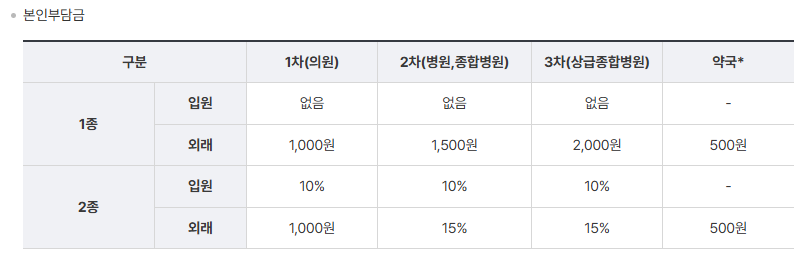 1종 | 외래 : 1,000원 | 1,500원 | 2,000원 | 500원 | 5% |