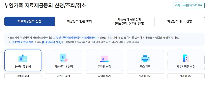 2. 소득 증빙 서류: 부양가족의 소득금액증명원(국세청에서 발급 가능)