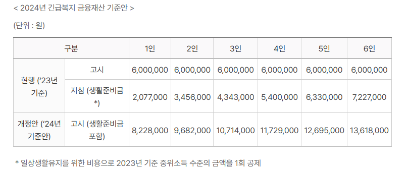 코로나19 팬데믹: 대규모 경제 위기로 인해 긴급생계비 지원 대상이 일시적으로 확대되었으며, 소득 기준이 완화되었습니다.