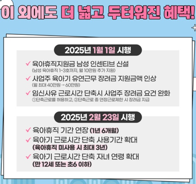 2025년에는 육아와 관련된 여러 제도가 추가로 개선됩니다.