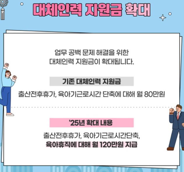 대체인력 지원금 확대는 사업주가 육아휴직자를 지원하는 데 큰 도움이 될 것입니다.