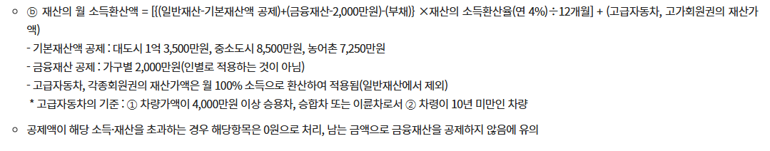 2) 소득 기준: