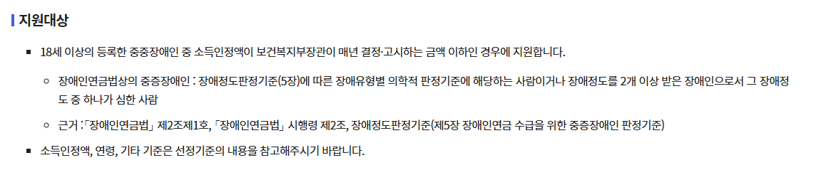 중위소득 50% 이하의 가구에 속하는 장애인이 주요 대상입니다.
