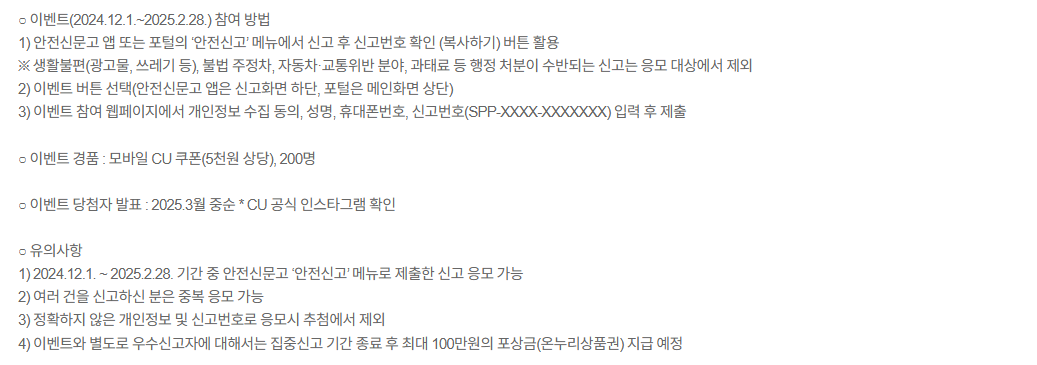 또한, 적극적인 신고로 포상금을 받을 수 있는 기회도 주어지니, 주저하지 말고 안전신문고를 활용해 보세요. 작은 관심과 신고가 더 큰 안전을 만들어 갑니다.