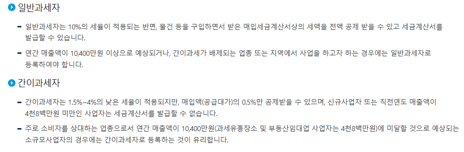 간이과세자: 연 매출이 8,000만 원 이하인 개인사업자는 간이과세자로 간주되며, 업종별 부가세율이 0.5~3%로 적용됩니다. 간이과세자는 매입세액 공제 범위가 제한적이지만, 신고 절차가 간소화되어 있습니다.