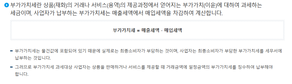 부가가치세(VAT, Value Added Tax)는 소비자가 구매한 상품이나 서비스에 부과되는 간접세로, 사업자가 거래 과정에서 발생한 부가가치에 대해 납부하는 세금입니다.