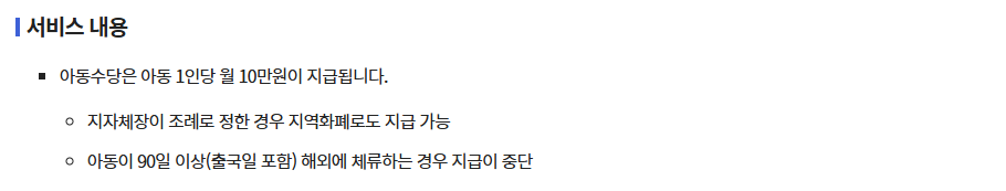 아동이 90일 이상 해외에 체류하는 경우 지급이 정지됩니다. 따라서 해외 거주 또는 장기 체류 계획이 있다면 사전에 행정복지센터에 알리는 것이 중요합니다.