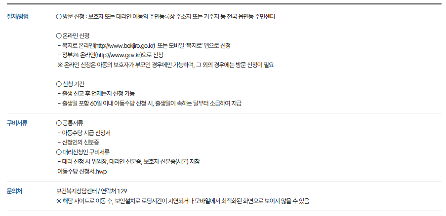 방문 신청: 아동의 주소지 또는 거주지의 읍·면·동 행정복지센터에서 신청 가능합니다. 방문 신청 시 준비된 서류를 지참하는 것이 중요합니다. 신청 시 필요한 서류를 정확히 준비하는 것이 중요합니다.