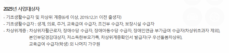 1) 6세 이상(2018년 12월 31일 이전 출생자) 기초생활수급자