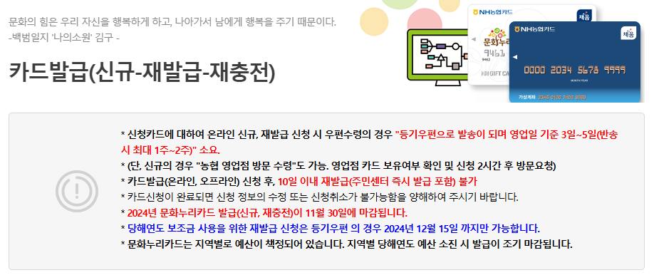 더 자세한 정보는 문화누리카드 누리집(www.mnuri.kr) 또는 모바일 애플리케이션(앱)을 통해 확인할 수 있습니다. 문화누리카드를 통해 여러분의 삶에 더 많은 문화적 즐거움이 함께하길 바랍니다.