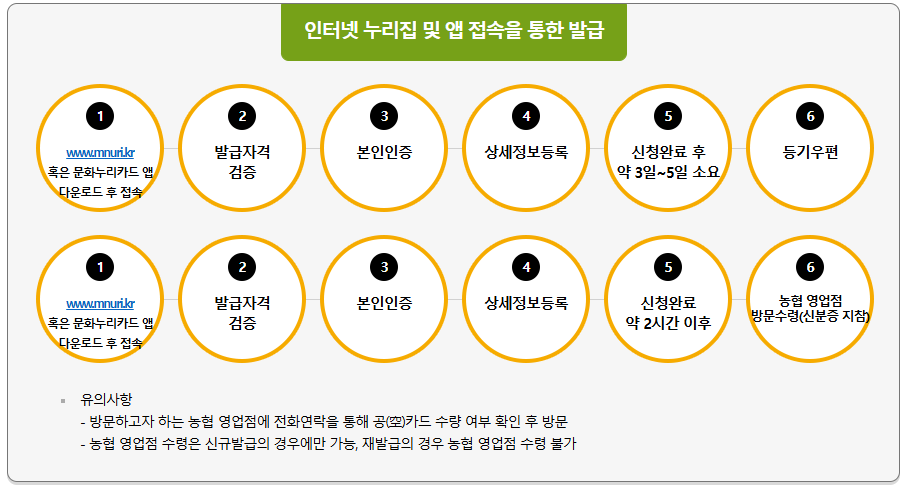 2) 문화누리카드 누리집(www.mnuri.kr): 온라인으로 간편하게 신청할 수 있습니다.
