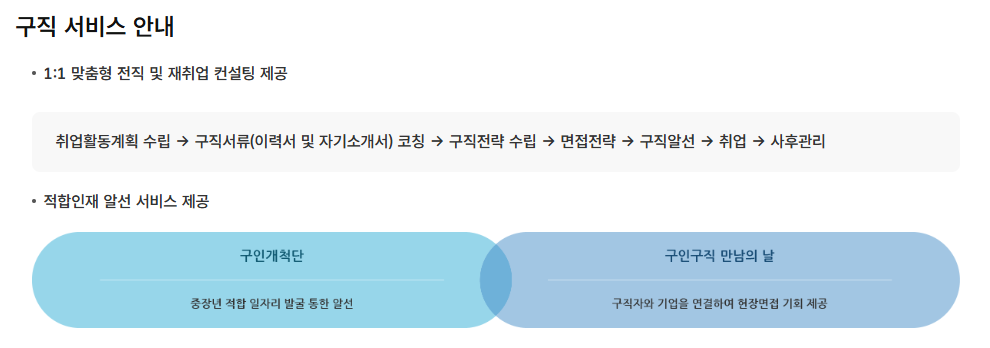 이러한 절차를 통해 중장년층이 무작정 구직하는 것이 아니라, 체계적으로 새로운 경력을 쌓고 재취업을 준비할 수 있도록 돕습니다.
