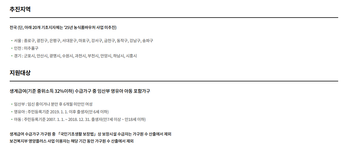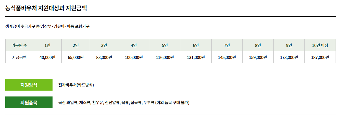 즉, 단순히 저소득 가구라고 해서 모두 받을 수 있는 것은 아니며, 임산부나 미성년 자녀가 포함된 생계급여 수급 가구여야 신청이 가능합니다.