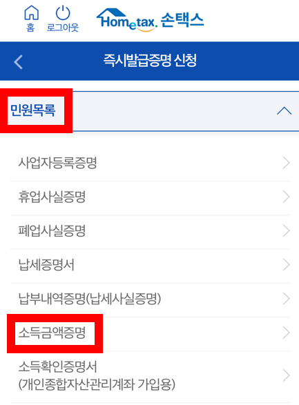 모바일로도 간편하게 소득금액증명원을 발급받을 수 있습니다.