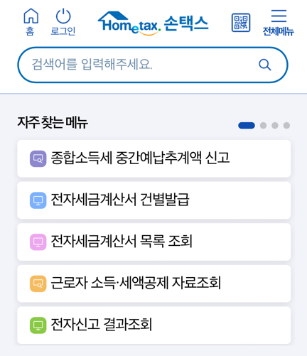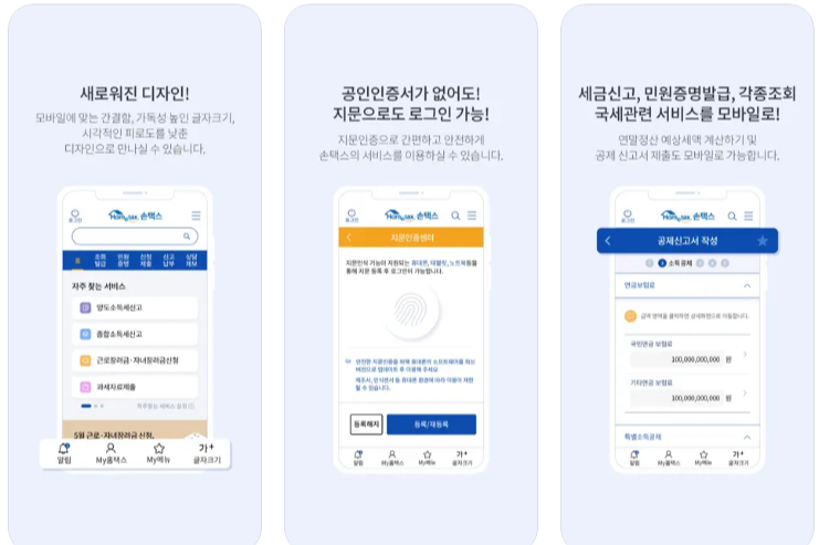 '손택스'라는 국세청 모바일 앱을 이용하면 되며, 아래 앱 다운로드를 통해 다운 받으실수 있습니다.