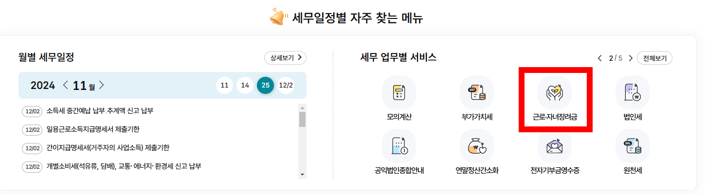 3) [근로,자녀장려금 정기신청]→[신청하기]선택