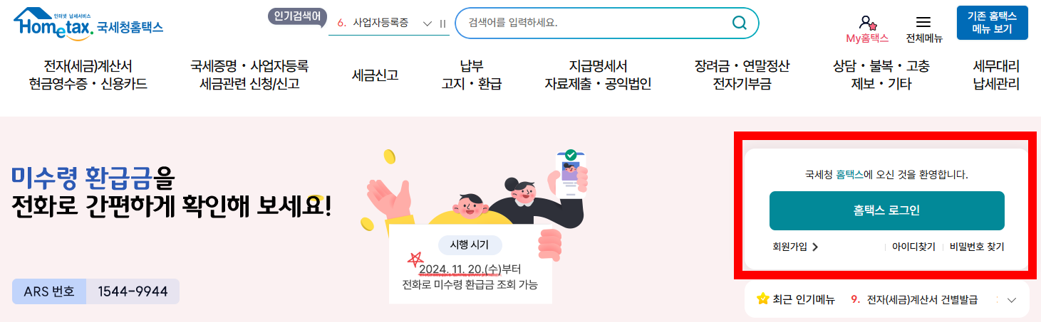 1. 홈택스 접속 : 국세청 홈택스(www.hometax.go.kr)에 접속합니다.