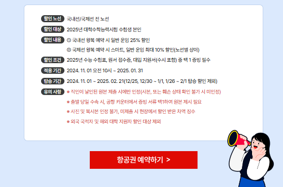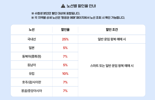 수능이 끝난 후 여행을 떠나려는 수험생들을 위해 교통 및 여행 관련 할인 혜택도 준비되어 있습니다.