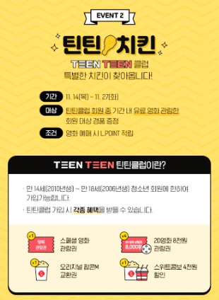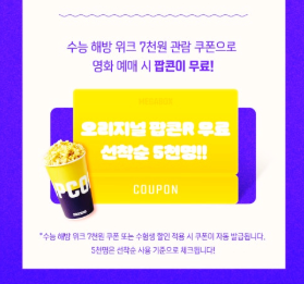 2) 메가박스 : 영화 관람권 할인(7,000원) 및 선착순 5,000명에게 오리지널 팝콘R 무료