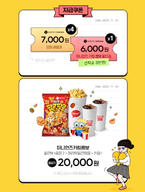 3) 롯데시네마 : 모든 영화 7,000원 4매 제공 및 미니언즈 키링 콤보 할인 3만명 한정
