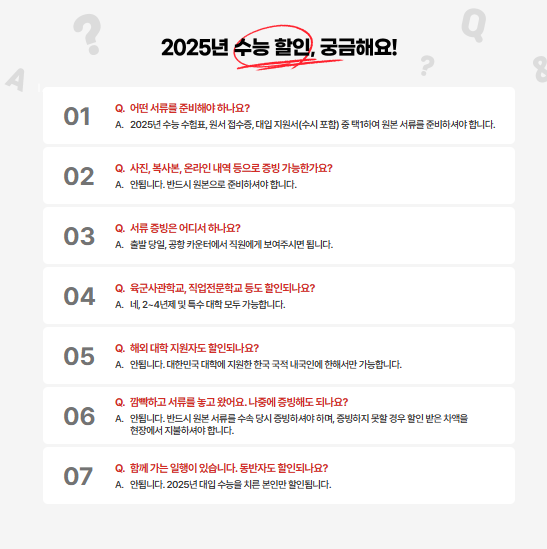 2025 수능 수험생 할인 이벤트는 패션, 여가, 외식, 여행, 자기계발 등 다양한 분야에서 진행됩니다.
