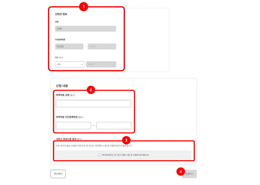 발급 신청에서 자녀 정보 확인 후 발급 신청을 진행해주세요.