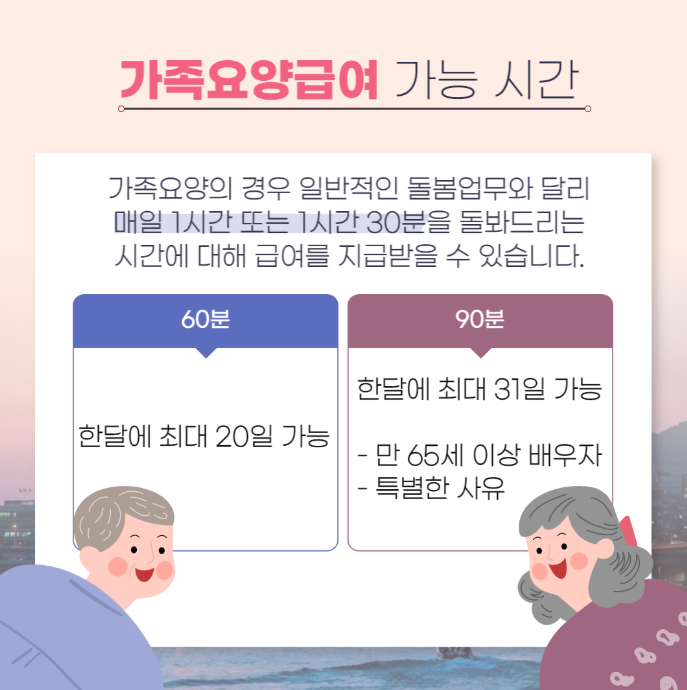 4. 시간 제한: 가족요양보호사는 하루 최대 3시간까지만 서비스를 제공할 수 있습다.