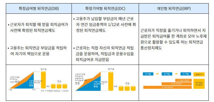 근로자가 퇴직 후 안정적인 소득을 유지할 수 있도록 고용주가 제공하는 제도로, 근로자가 재직 중에 연금을 적립하여 퇴직 후 수령하는 방식입니다.