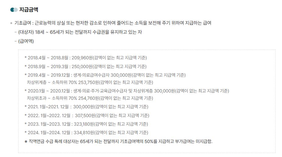 18-64세 | 기본급여와 부가급여의 합산 금액 |