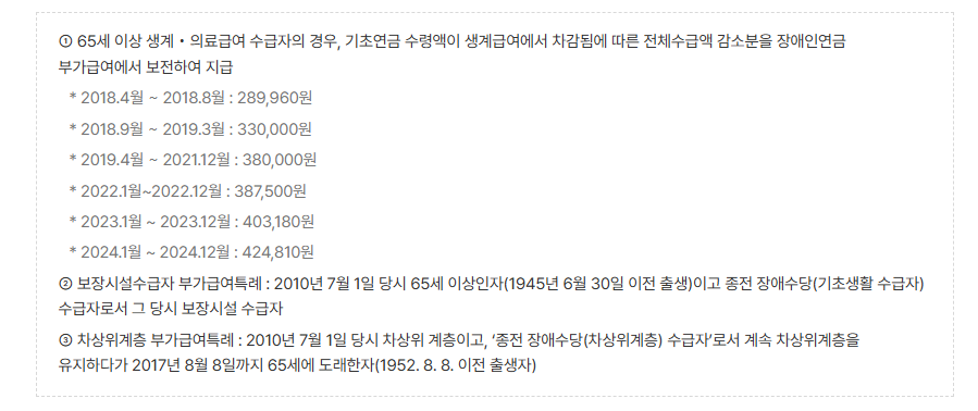 2. 부가급여: 부가급여는 기초생활보장 수급자, 차상위계층 등 추가적인 경제적 지원이 필요한 사람들에게 지급됩니다. 부가급여 금액은 개인의 소득과 재산 수준에 따라 차등 지급됩니다.