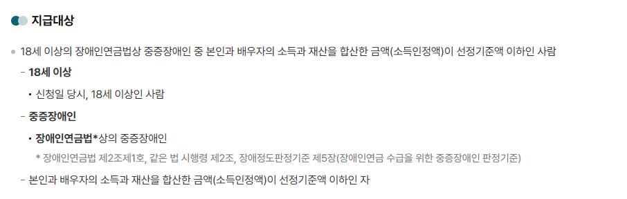 중증장애인으로 인정받은 사람들에게 지급되며, 장애로 인해 발생하는 추가적인 생활비 부담을 경감하고 기본적인 생활을 지원하는 것을 목표로 합니다.