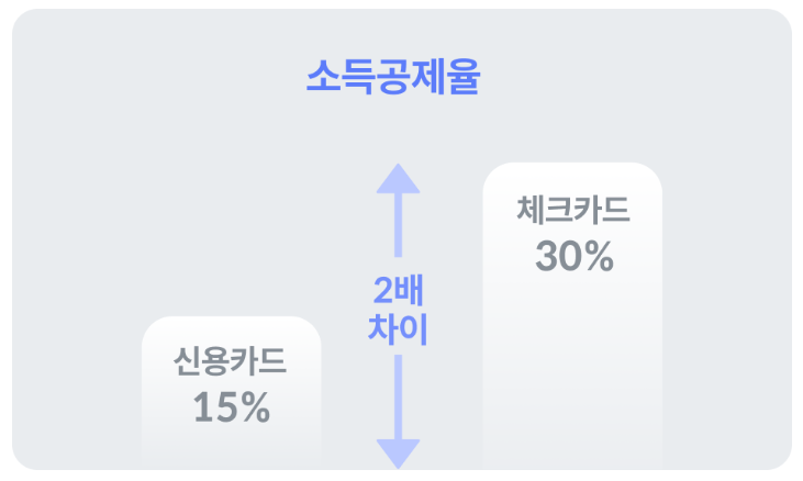 신용카드 사용분보다 체크카드가 공제율이 두배 더 높습니다.