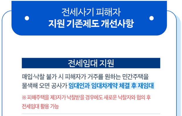 1. 전세임대 지원 : 피해자가 새로운 임대 계약을 체결할 수 있도록 지원합니다.