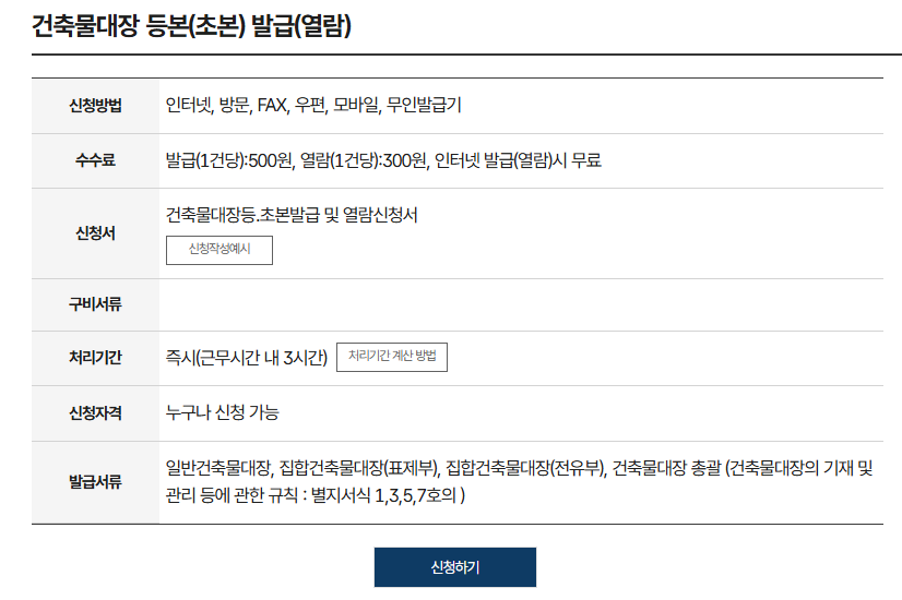 건축물대장 등본(초본) 발급(열람) | 민원안내 및 신청 | 정부24