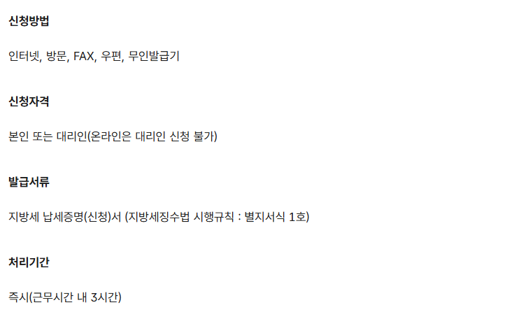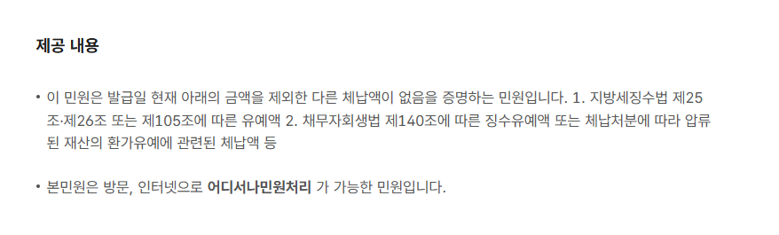 체납 여부를 사전에 확인하고, 발급 용도에 맞춰 적절히 이용해보세요!