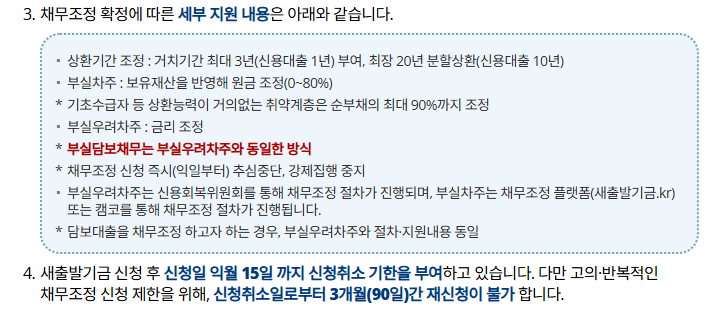 2. 제한적 지원: 모든 채무가 조정 대상이 되는 것은 아니며, 심사를 통해 지원 여부가 결정됩니다.