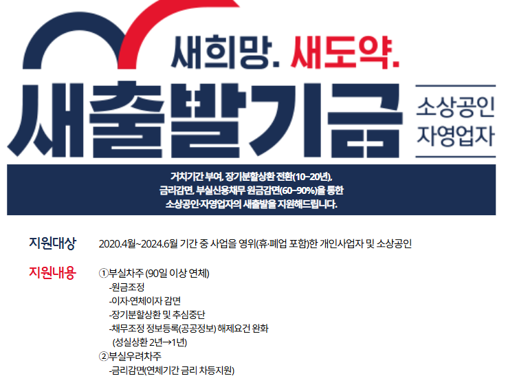 새출발기금은 어려움을 겪고 있는 개인사업자와 소상공인을 지원하기 위해 마련된 프로그램입니다.