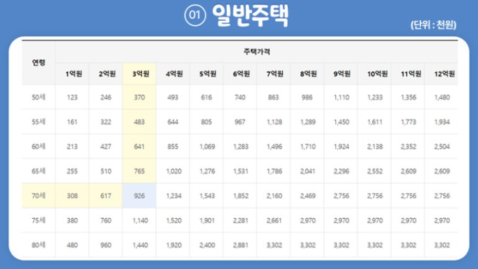 주택의 시세와 신청자의 나이에 따라 결정됩니다.