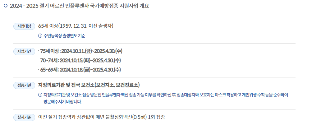75세 이상 | 2024년 10월 11일(금)부터 2025년 4월 30일(수)까지 |
