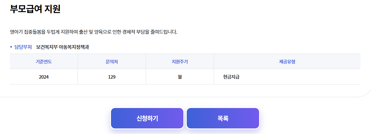 부모급여 지원 내용