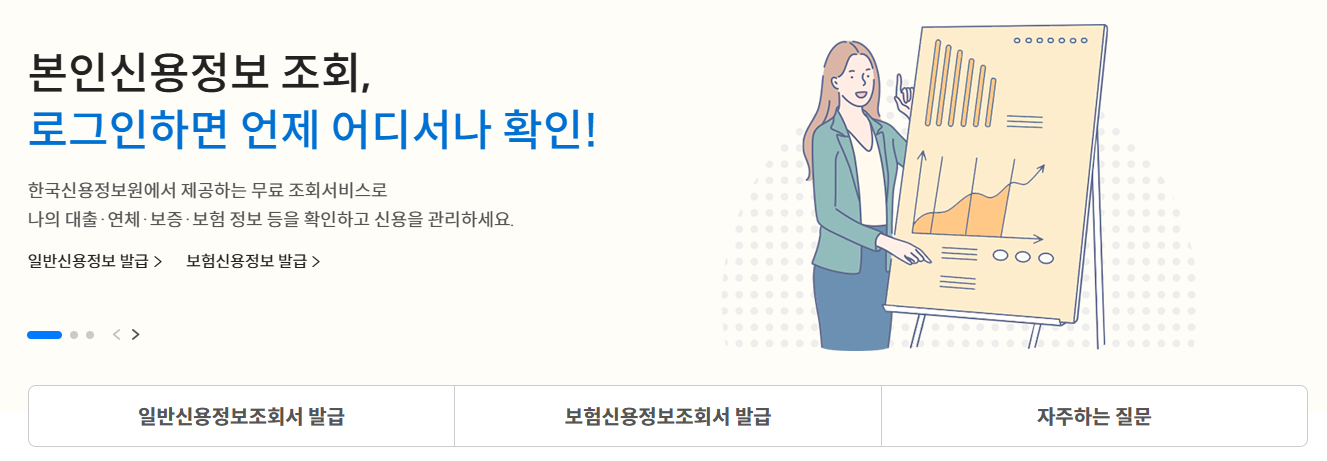 대표적인 신용평가회사로는 나이스평가정보(NICE), 코리아크레딧뷰로(KCB)가 있습니다. 해당 회사의 공식 웹사이트에 접속합니다.