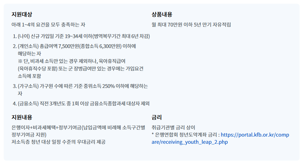 정부 기여금, 비과세 혜택, 그리고 신용평가점수 가점 등 다양한 혜택이 포함되어 있어 청년들의 자산 형성과 신용 관리를 동시에 지원하는 것이 특징입니다.